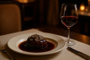 フォアグラやトリュフを使った濃厚なソースと野性味あふれる肉が、ワインの複雑さと共鳴し、互いを高め合います。